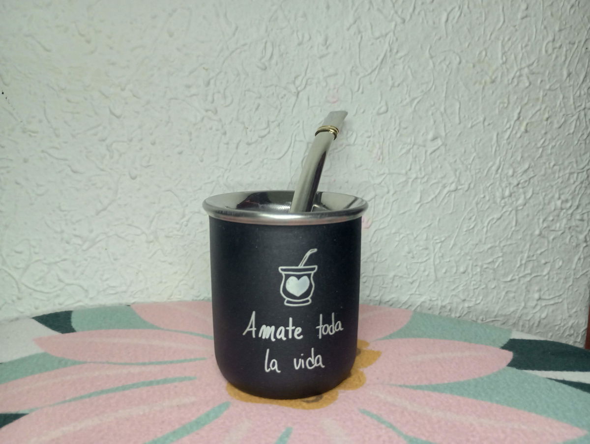 Mate de aceo inoxidable grabado